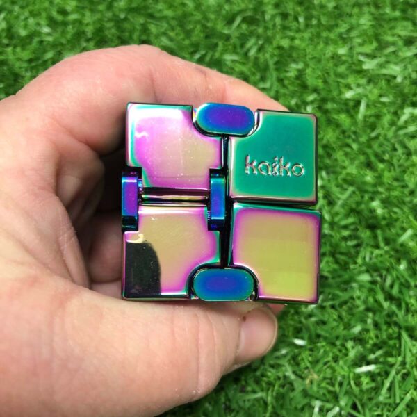 - Custom oil slick design: Kaiko worked for over a year with manufacturers to perfect this custom-made infinity cube. Each of the 17 moving parts is individually treated to create the stunning oil slick effect, then carefully pieced together by hand.