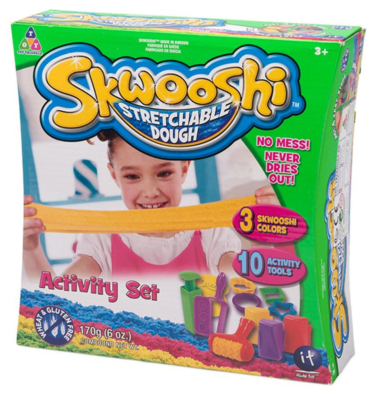 Skwooshi is an incredible mouldable, s t r e t c h a b l e dough that never dries out. It is mess free, 100% non toxic, you can create amazing shapes, characters, construct with it and mix colors. It is wheat gluten free and casein free. But, the magic is the “Skwooshi Effect” …one minute you’re moulding with Skwooshi, the next minute Skwooshi is stretching! (and for all you scientists out there it is a “Non Newtonian Fluid”) Skwooshi then instantly transforms right back to being a solid.